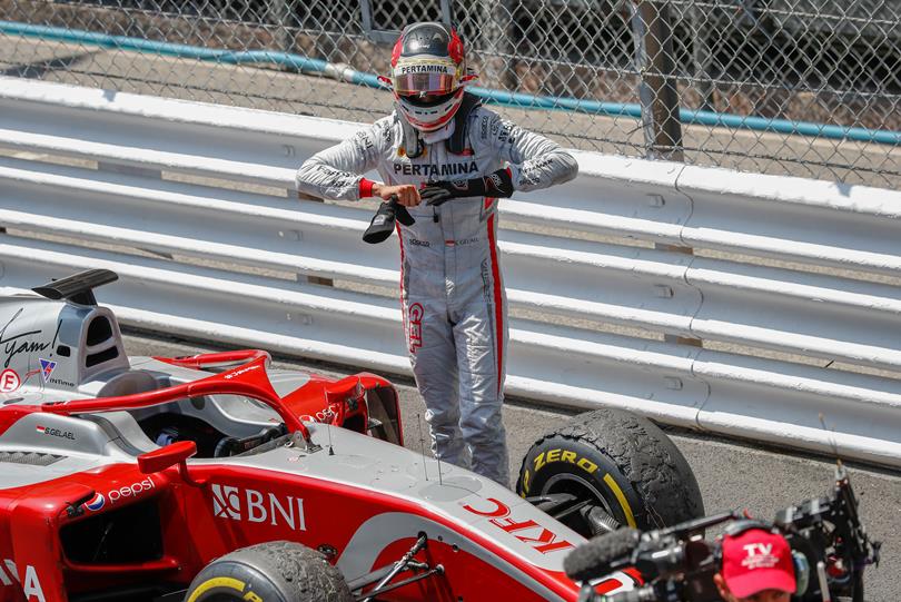 Sean Gelael memulai balapan dengan baik. Sean yang start dari posisi ketujuh tampil cukup percaya diri dengan modal podium kedua pada balapan sebelumnya. Sayangnya, Sean sedikit kehilangan kontrol mobinya pada laps ketiga. Mobilnya menyentuh kerbs yang membuat melayang dan menabrak pembatas lintasan.